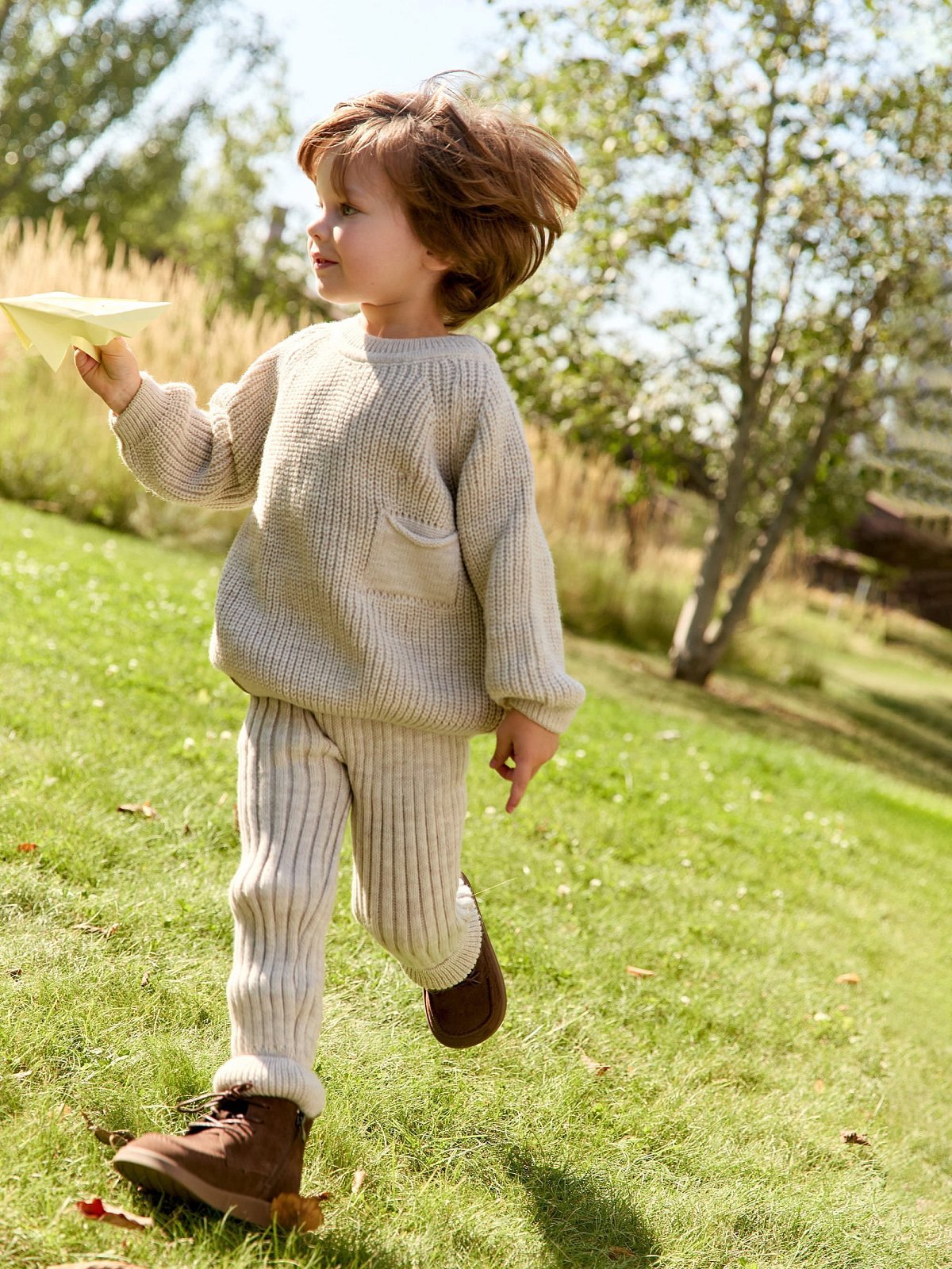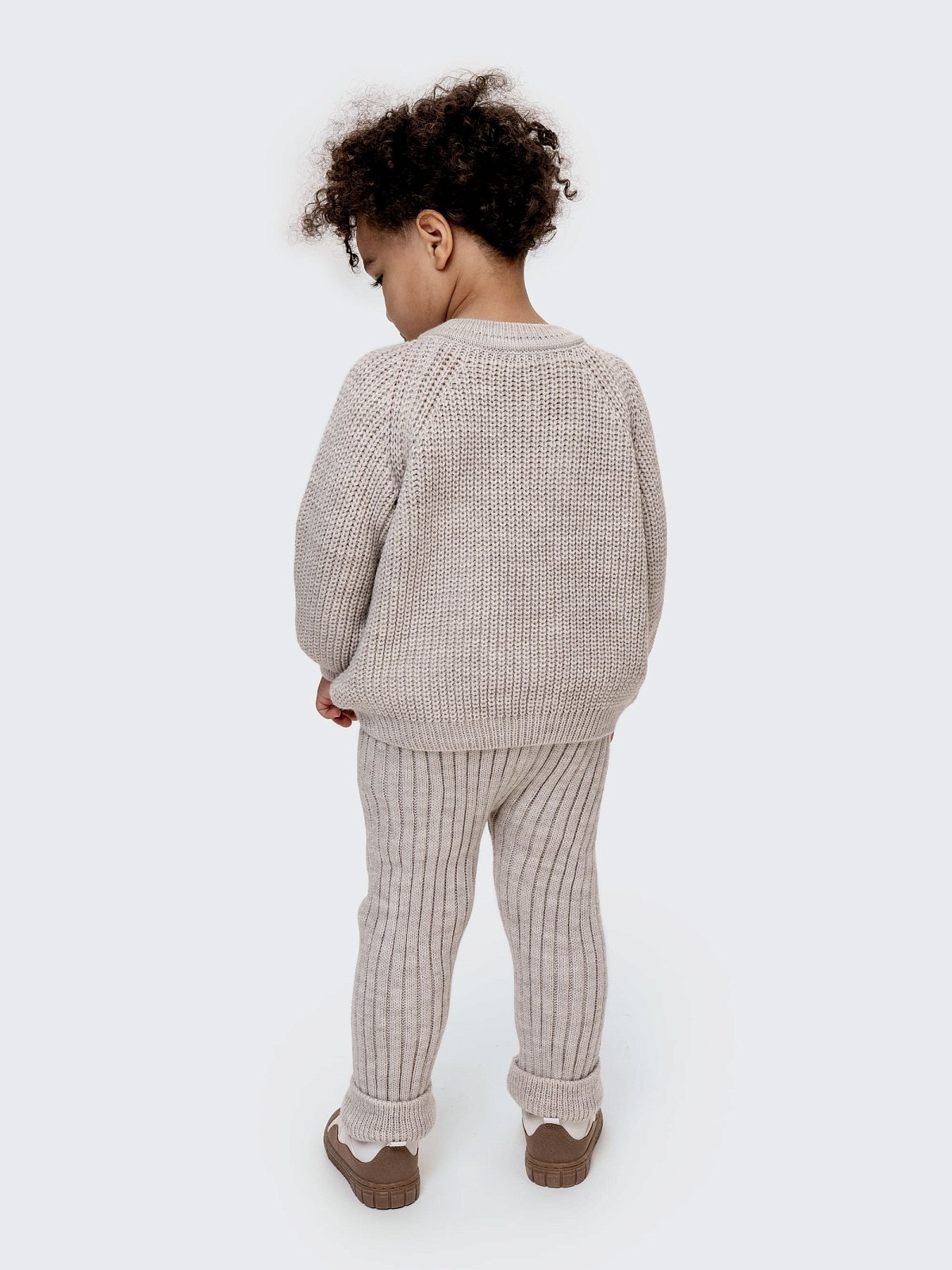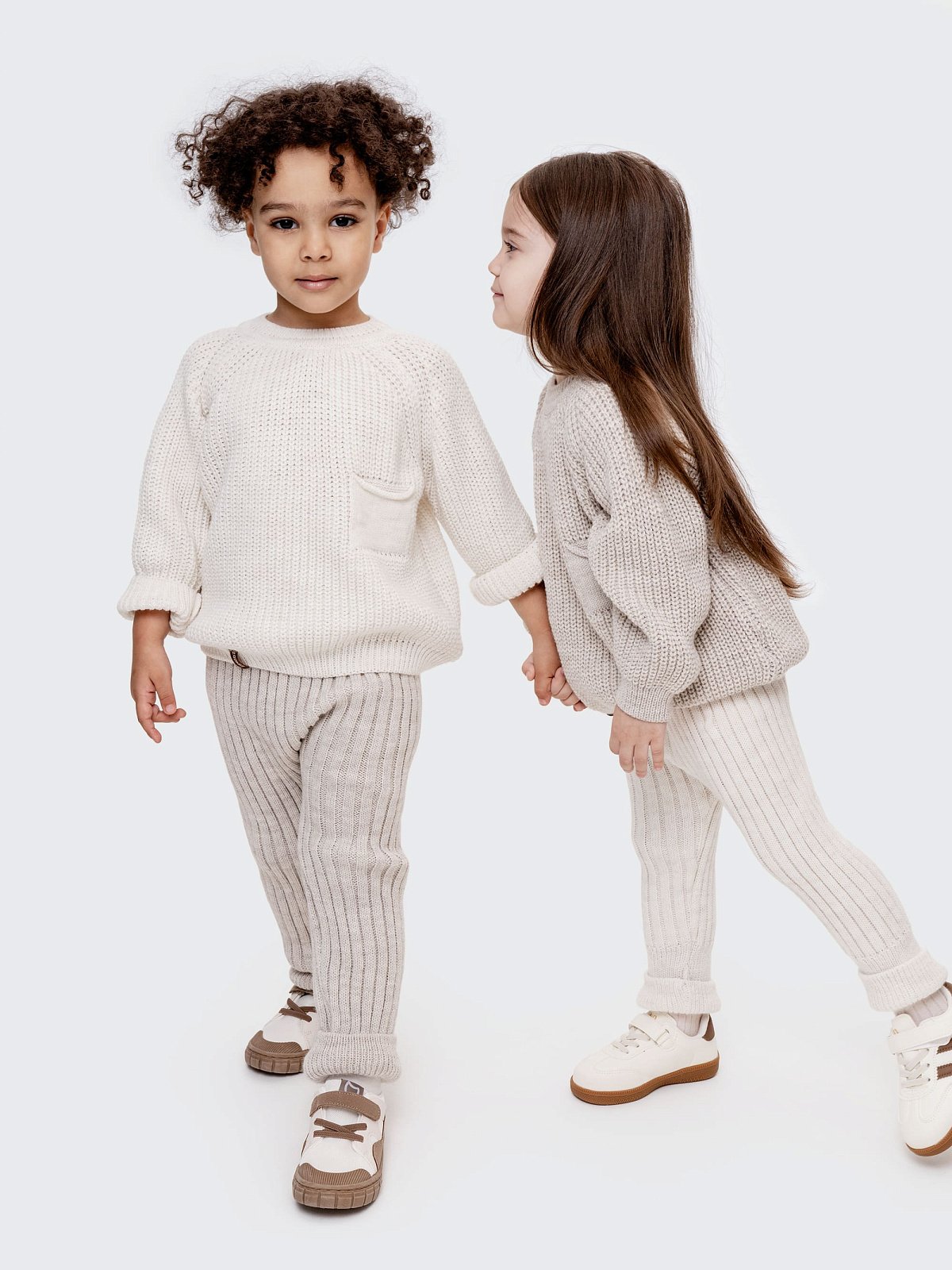 Вязаные брюки «Твист» отлично сочетаются со свитером из той же коллекции — создайте уютный и стильный образ для вашего малыша! Идеальны для детского сада, прогулок и домашнего уюта."