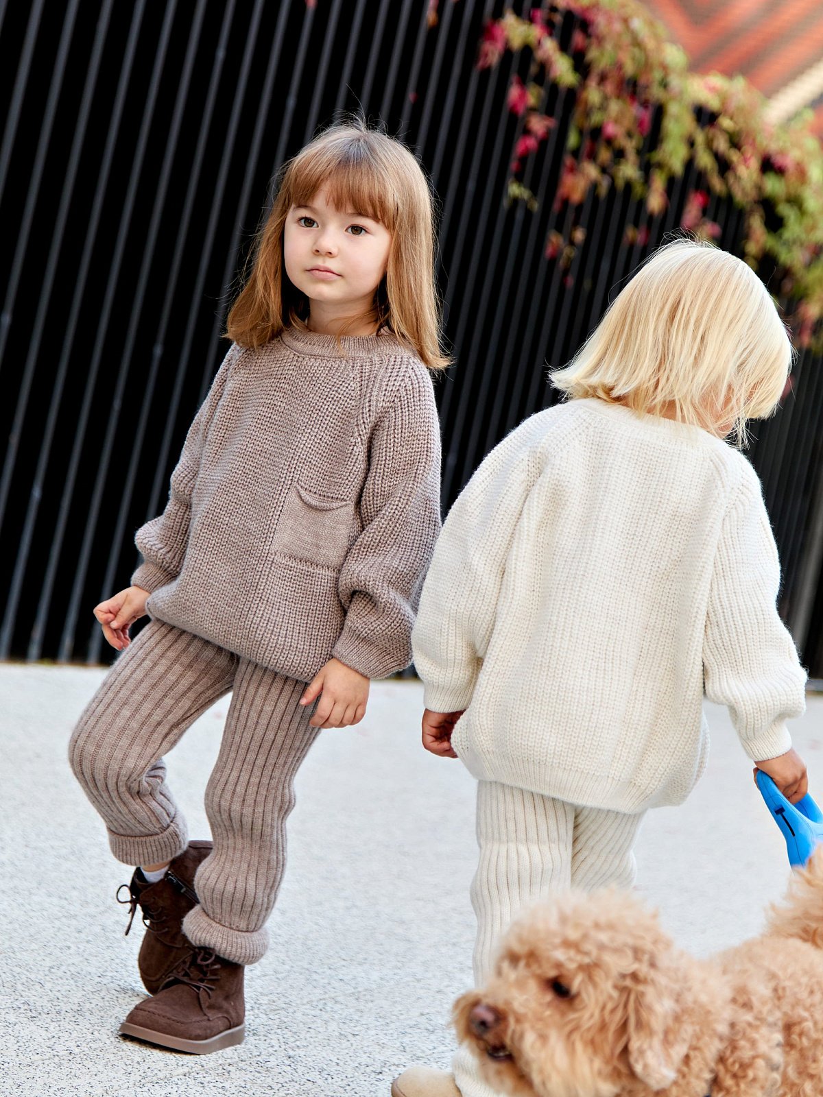 Вязаные брюки «Твист» отлично сочетаются со свитером из той же коллекции — создайте уютный и стильный образ для вашего малыша! Идеальны для детского сада, прогулок и домашнего уюта."