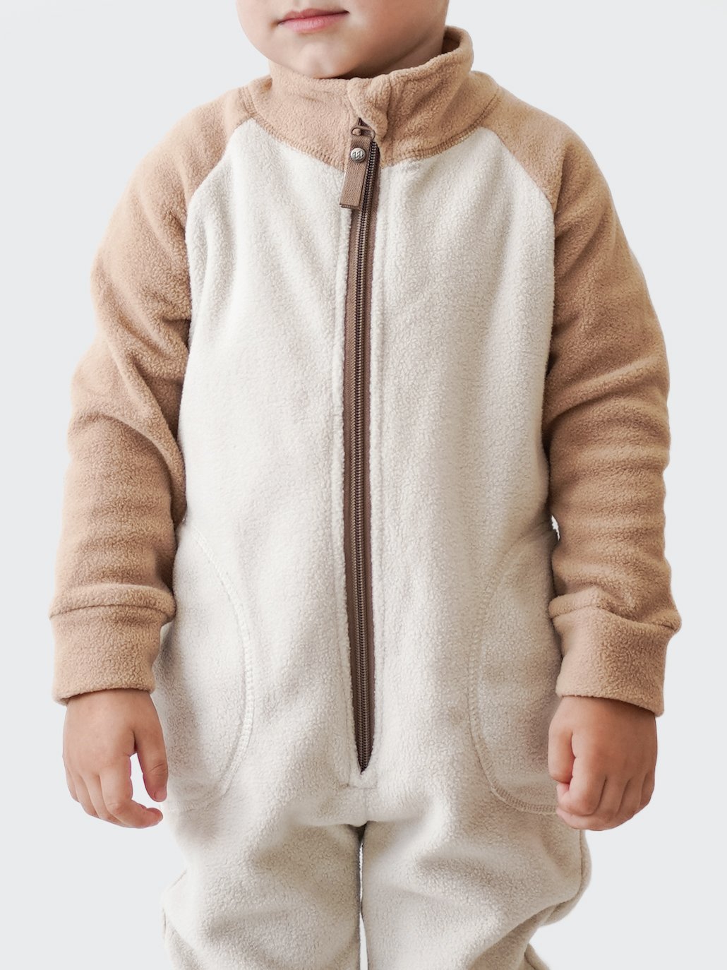 Флисовый комбинезон Colour Block — универсальная одежда для детей от 1 до 7 лет. Изготовлен из мягкого трикотажного флиса, сохраняющего тепло. Подходит для ношения при +15°C и как поддева до -20°C. Материал эластичный, легкий и гипоаллергенный, что обеспечивает комфорт и свободу движений.Материал: флис-трикотаж (100% полиэфир), плотность 190 г/м².