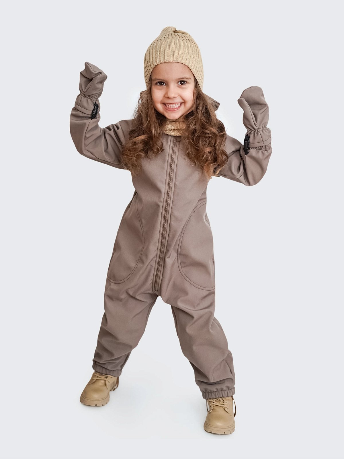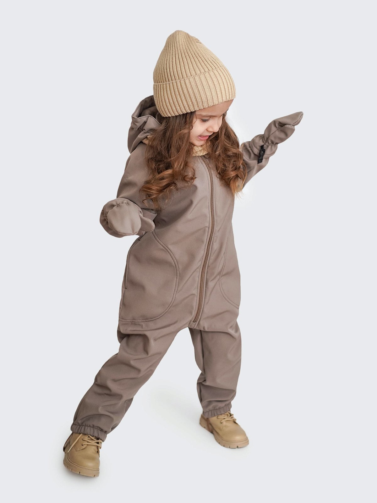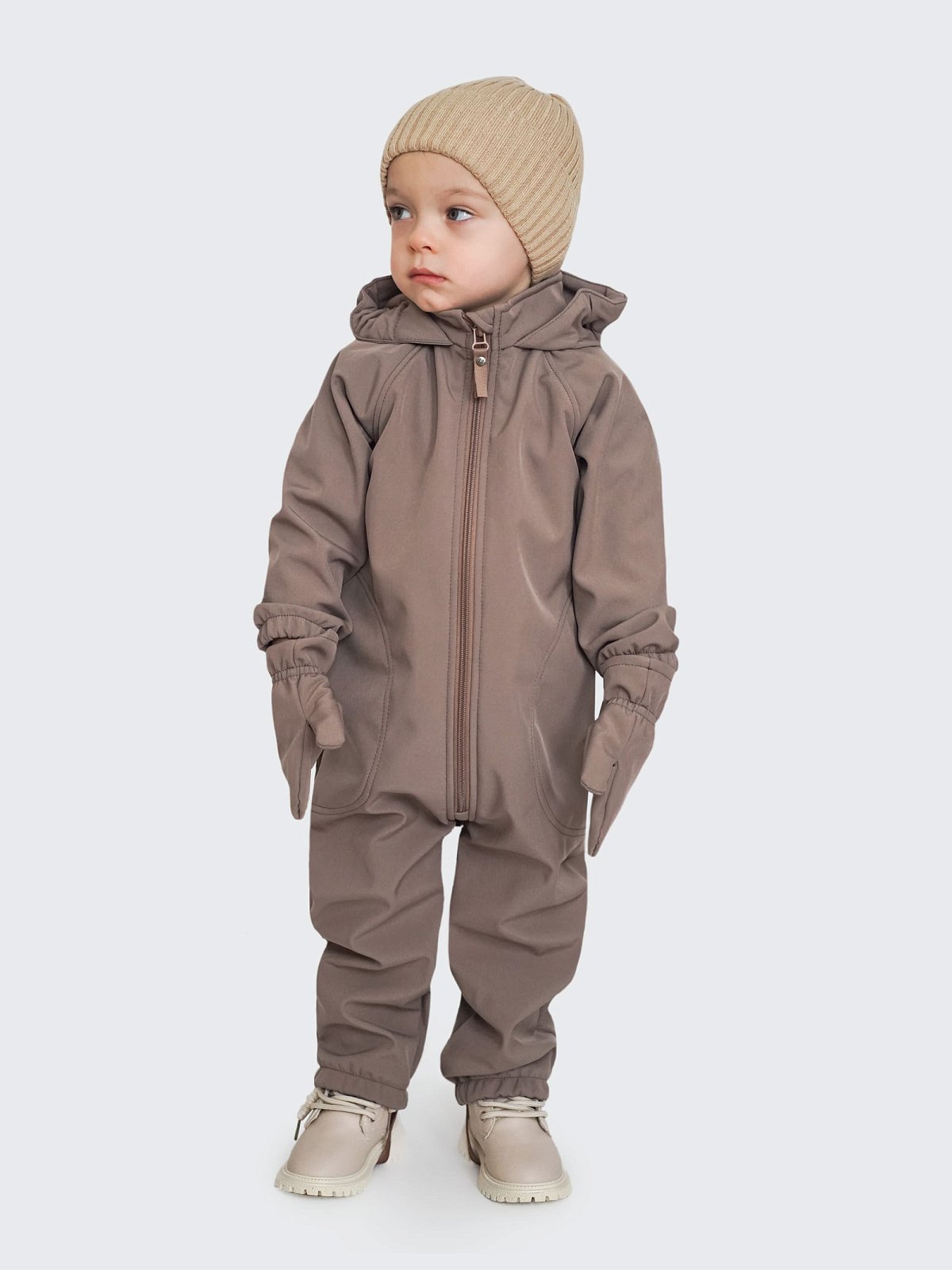 Комбинезон детский софтшелл, цвет коричневый, размер 86