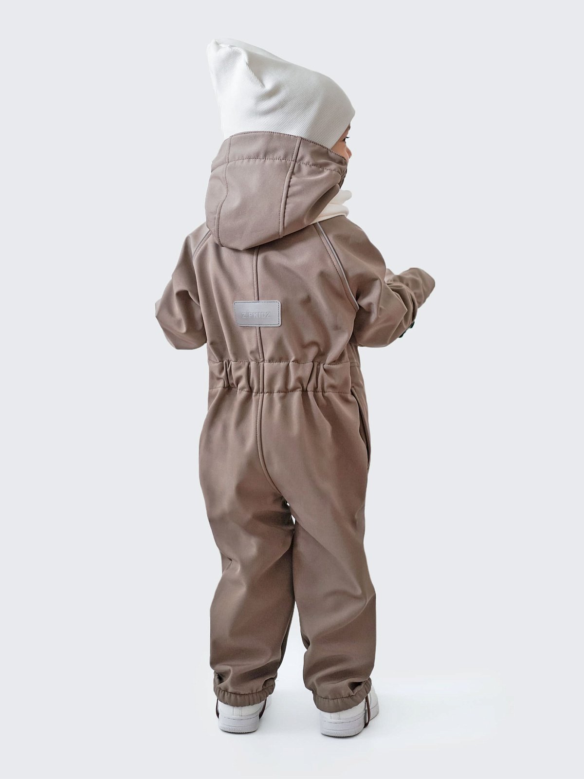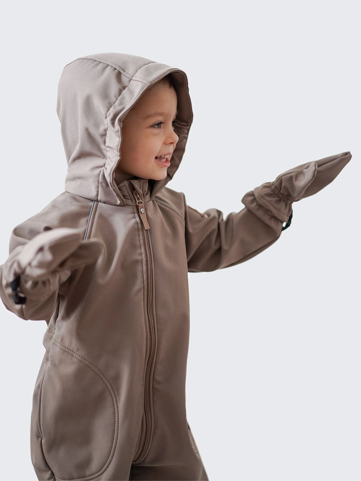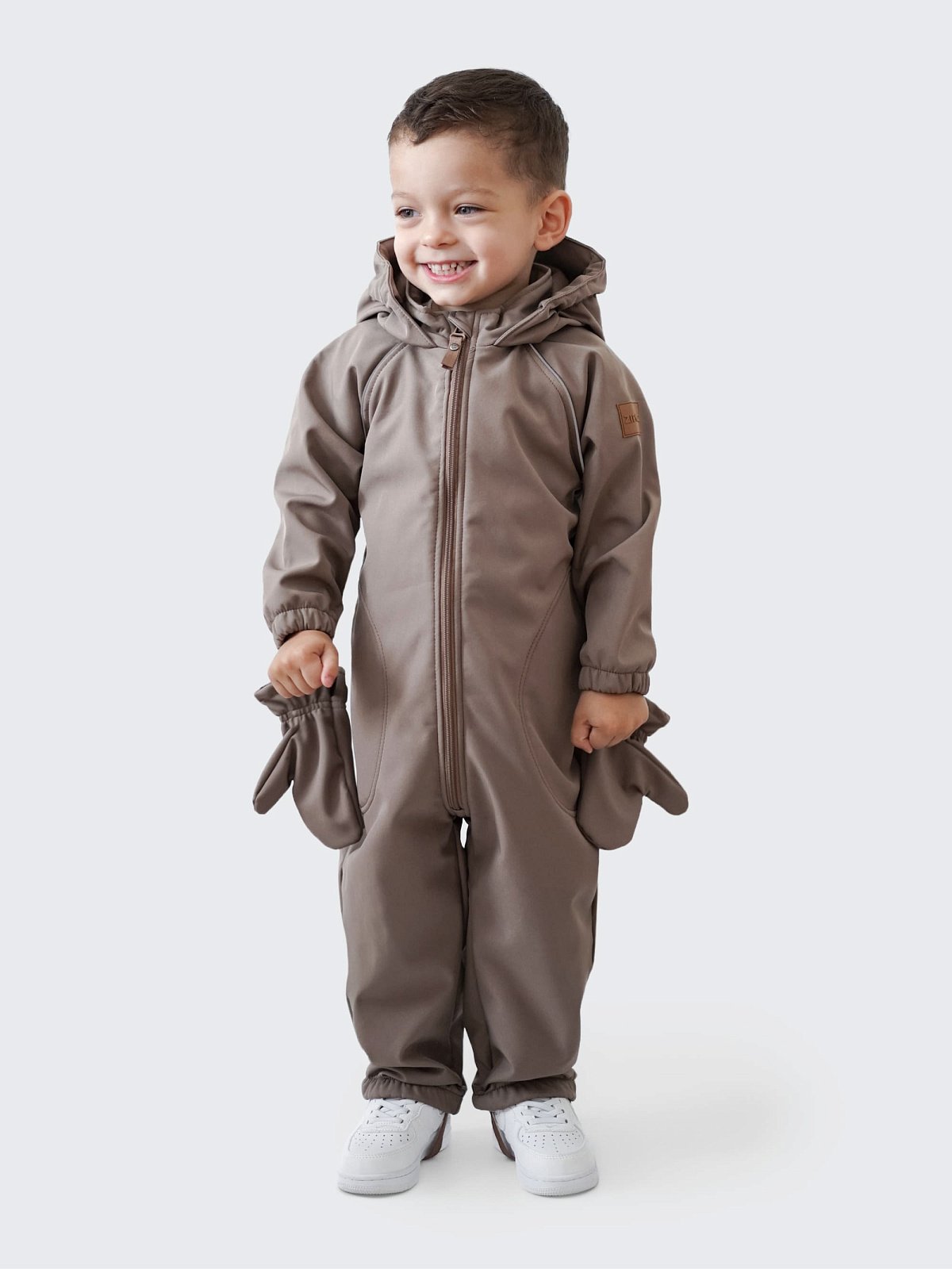 Комбинезон из софтшелла New — практичная одежда для детей от 1 до 10 лет. Изготовлен из многослойного софтшелла с флисовой подкладкой, он защищает от ветра, дождя и холода в диапазоне температур от +5°C до +20°C. Удобные подтяжки, штрипки и варежки, крепящиеся к рукавам, делают его комфортным для повседневного использования.