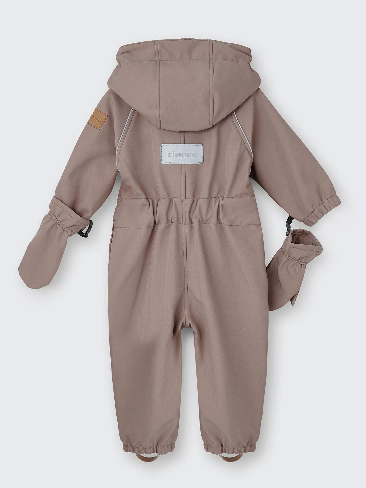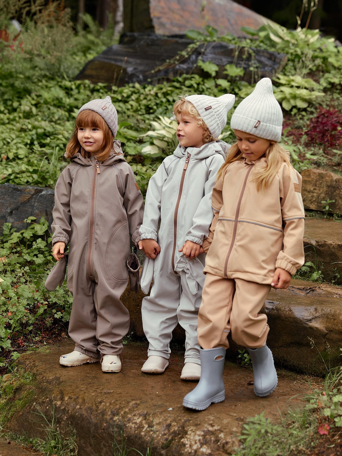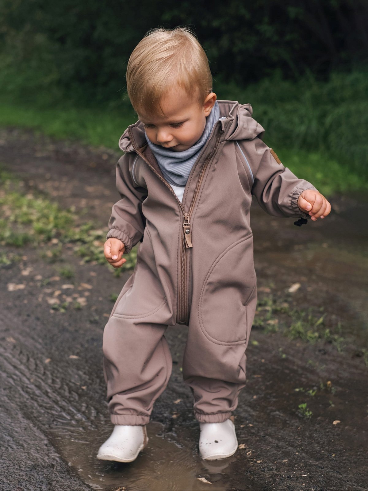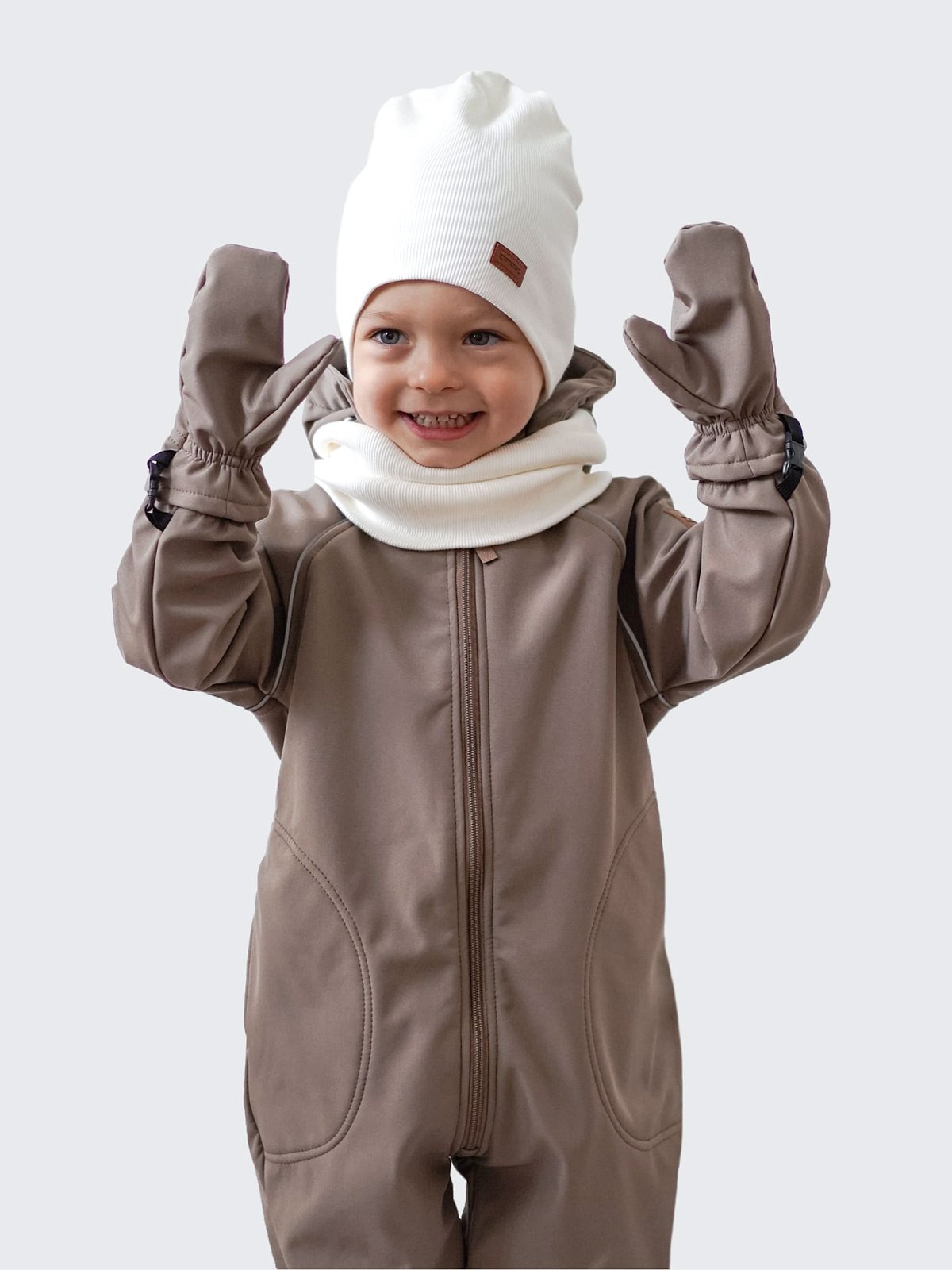 Комбинезон из софтшелла New — практичная одежда для детей от 1 до 10 лет. Изготовлен из многослойного софтшелла с флисовой подкладкой, он защищает от ветра, дождя и холода в диапазоне температур от +5°C до +20°C. Удобные подтяжки, штрипки и варежки, крепящиеся к рукавам, делают его комфортным для повседневного использования.