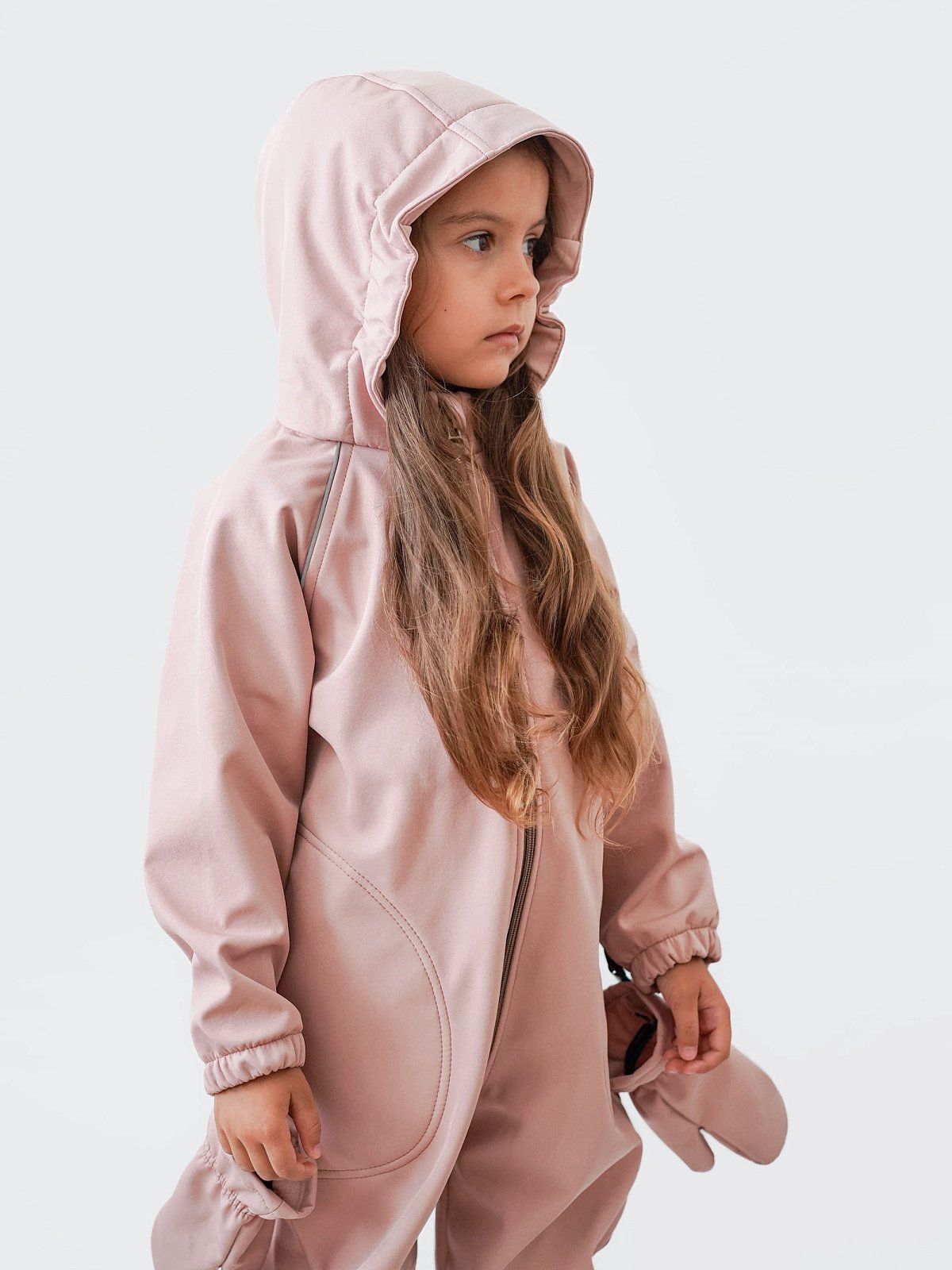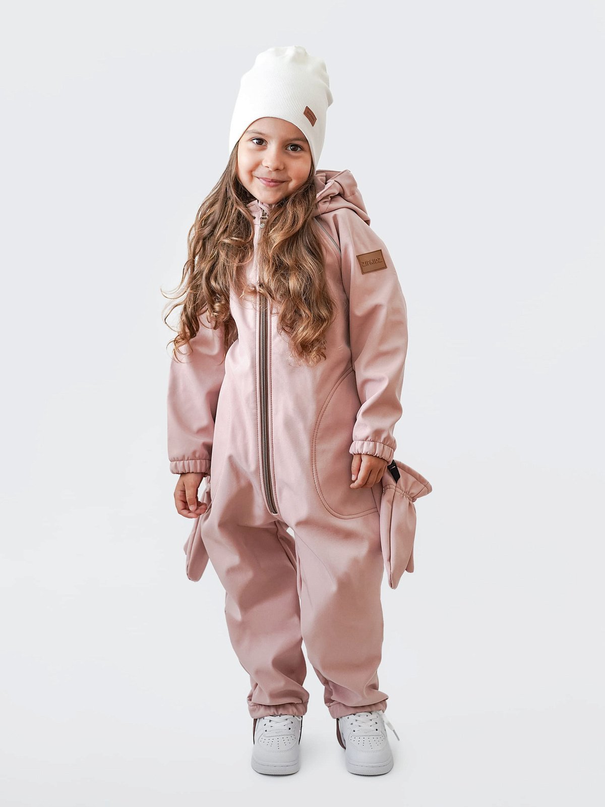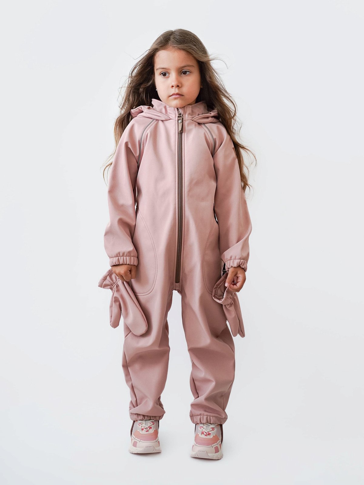 Комбинезон из софтшелла New — практичная одежда для детей от 1 до 10 лет. Изготовлен из многослойного софтшелла с флисовой подкладкой, он защищает от ветра, дождя и холода в диапазоне температур от +5°C до +20°C. Удобные подтяжки, штрипки и варежки, крепящиеся к рукавам, делают его комфортным для повседневного использования.
