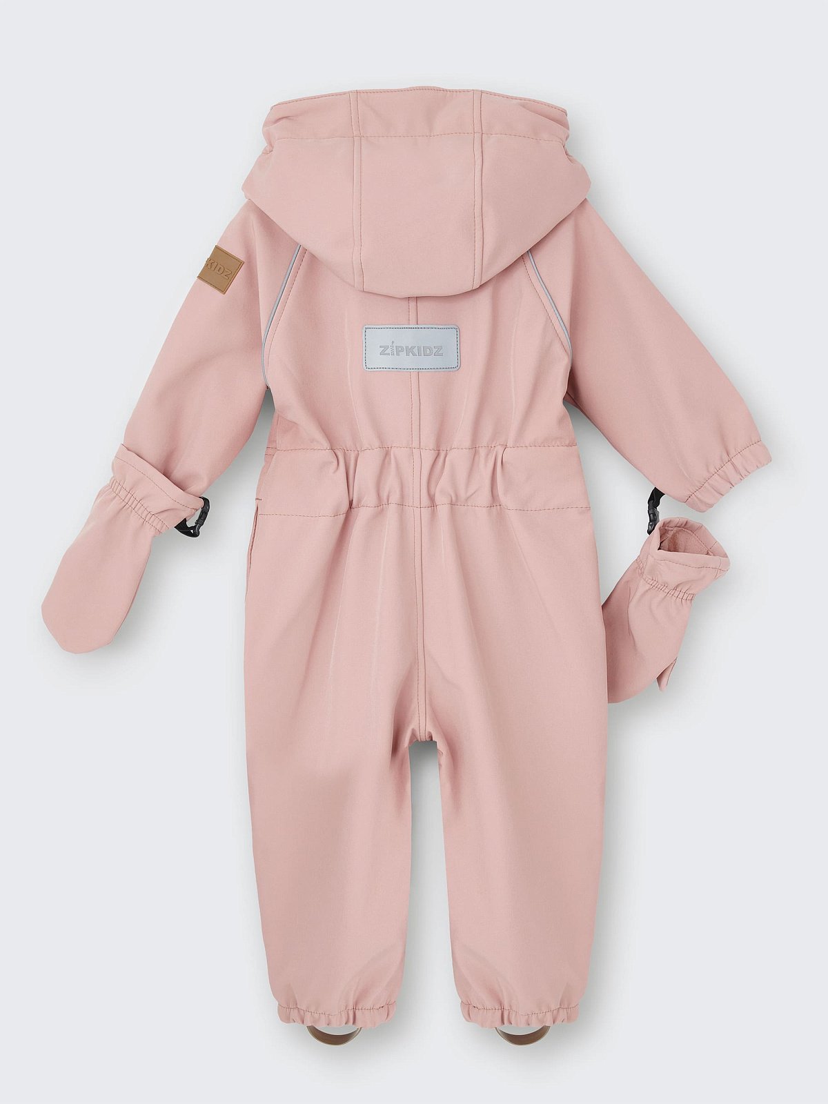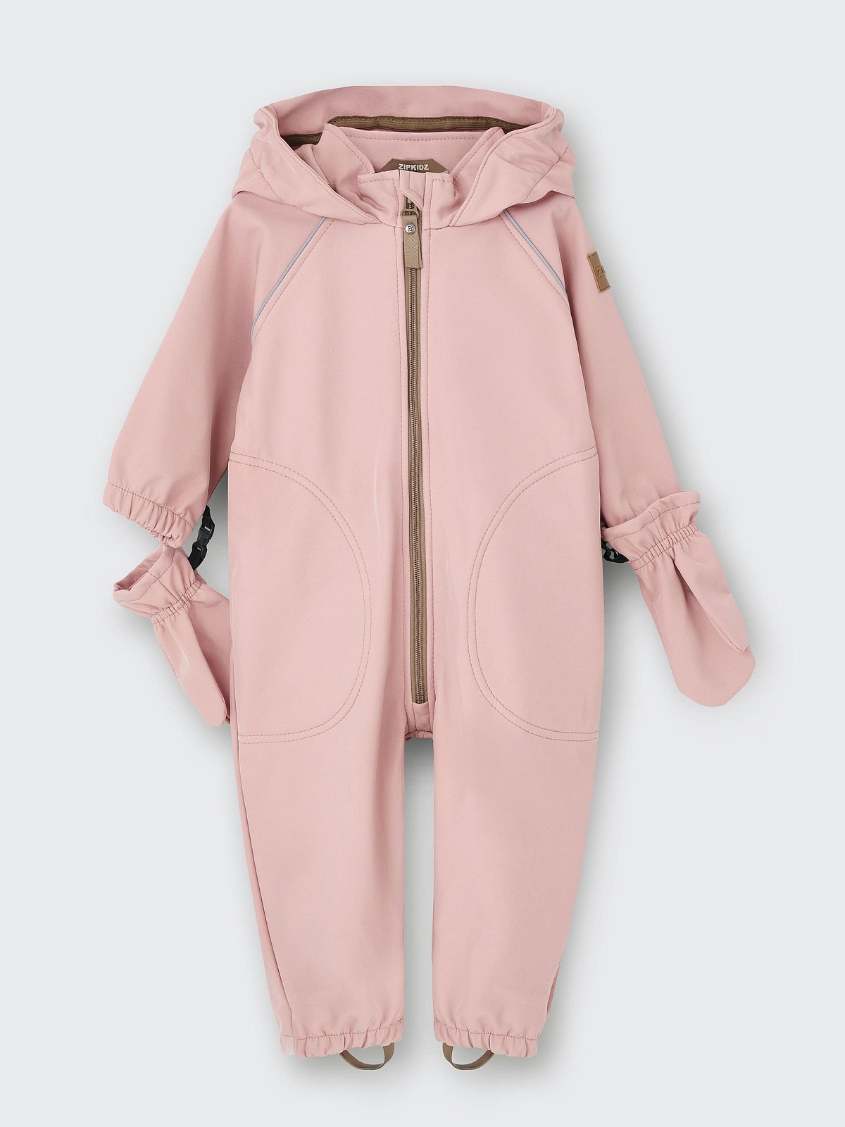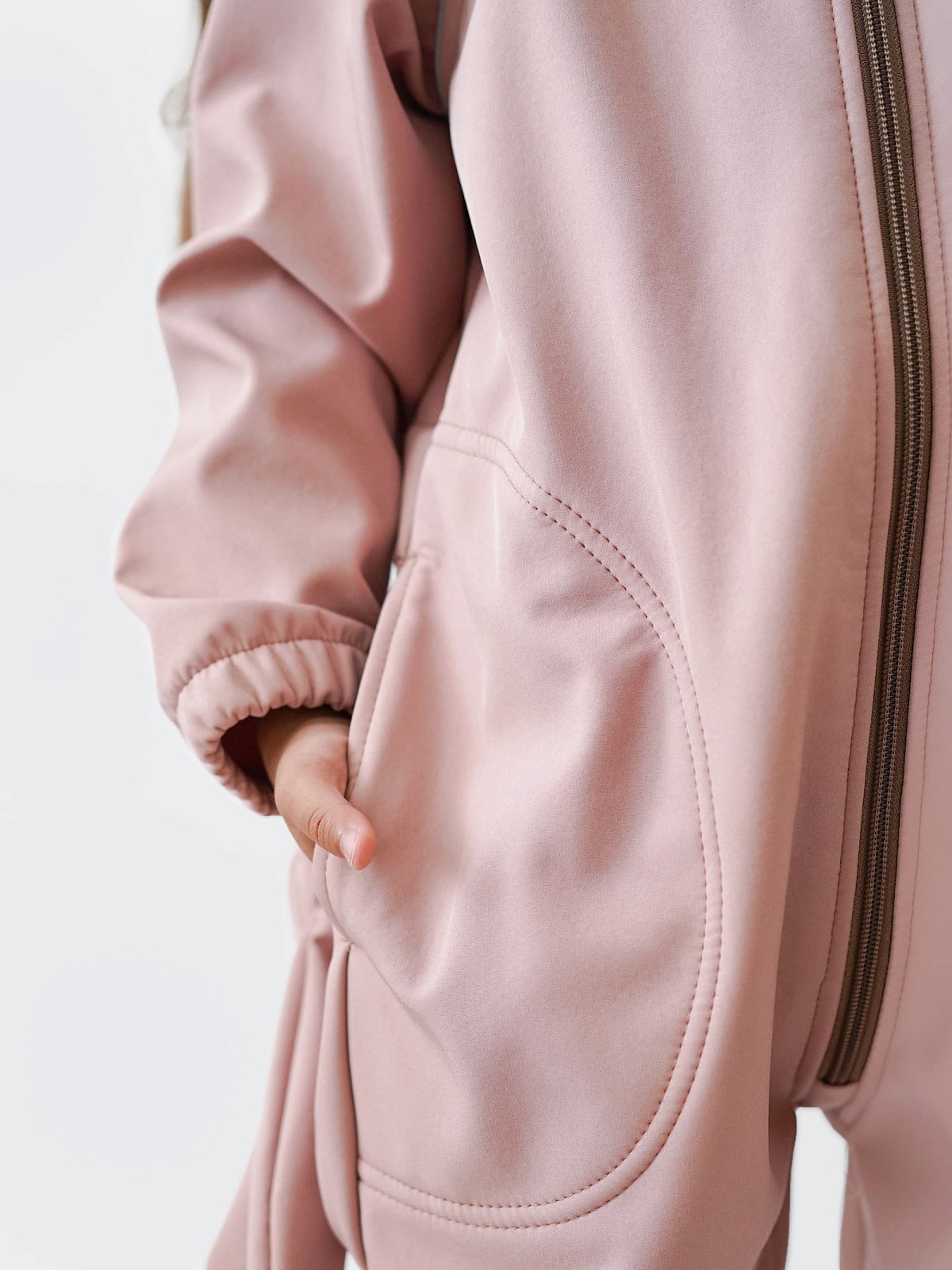 Комбинезон из софтшелла New — практичная одежда для детей от 1 до 10 лет. Изготовлен из многослойного софтшелла с флисовой подкладкой, он защищает от ветра, дождя и холода в диапазоне температур от +5°C до +20°C. Удобные подтяжки, штрипки и варежки, крепящиеся к рукавам, делают его комфортным для повседневного использования.