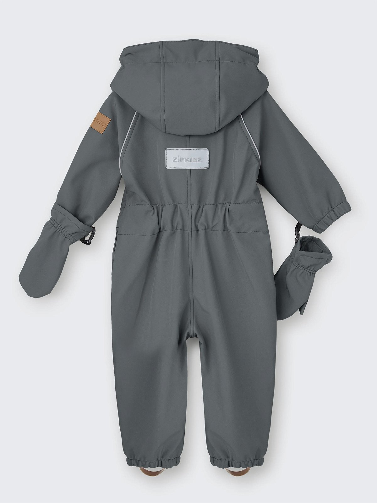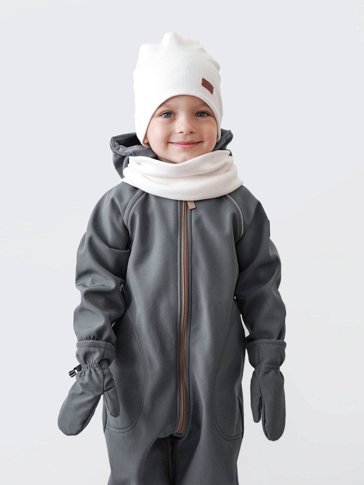 Комбинезон из софтшелла New — практичная одежда для детей от 1 до 10 лет. Изготовлен из многослойного софтшелла с флисовой подкладкой, он защищает от ветра, дождя и холода в диапазоне температур от +5°C до +20°C. Удобные подтяжки, штрипки и варежки, крепящиеся к рукавам, делают его комфортным для повседневного использования.