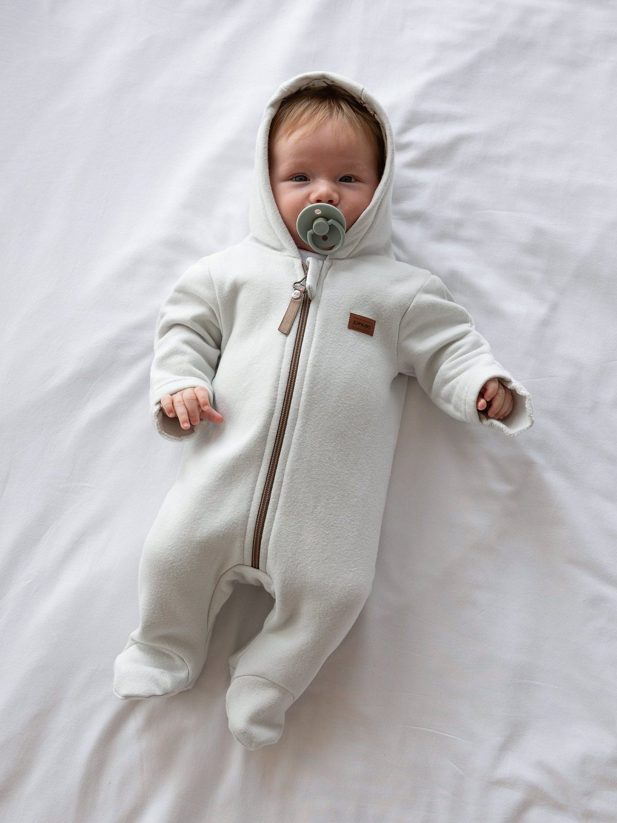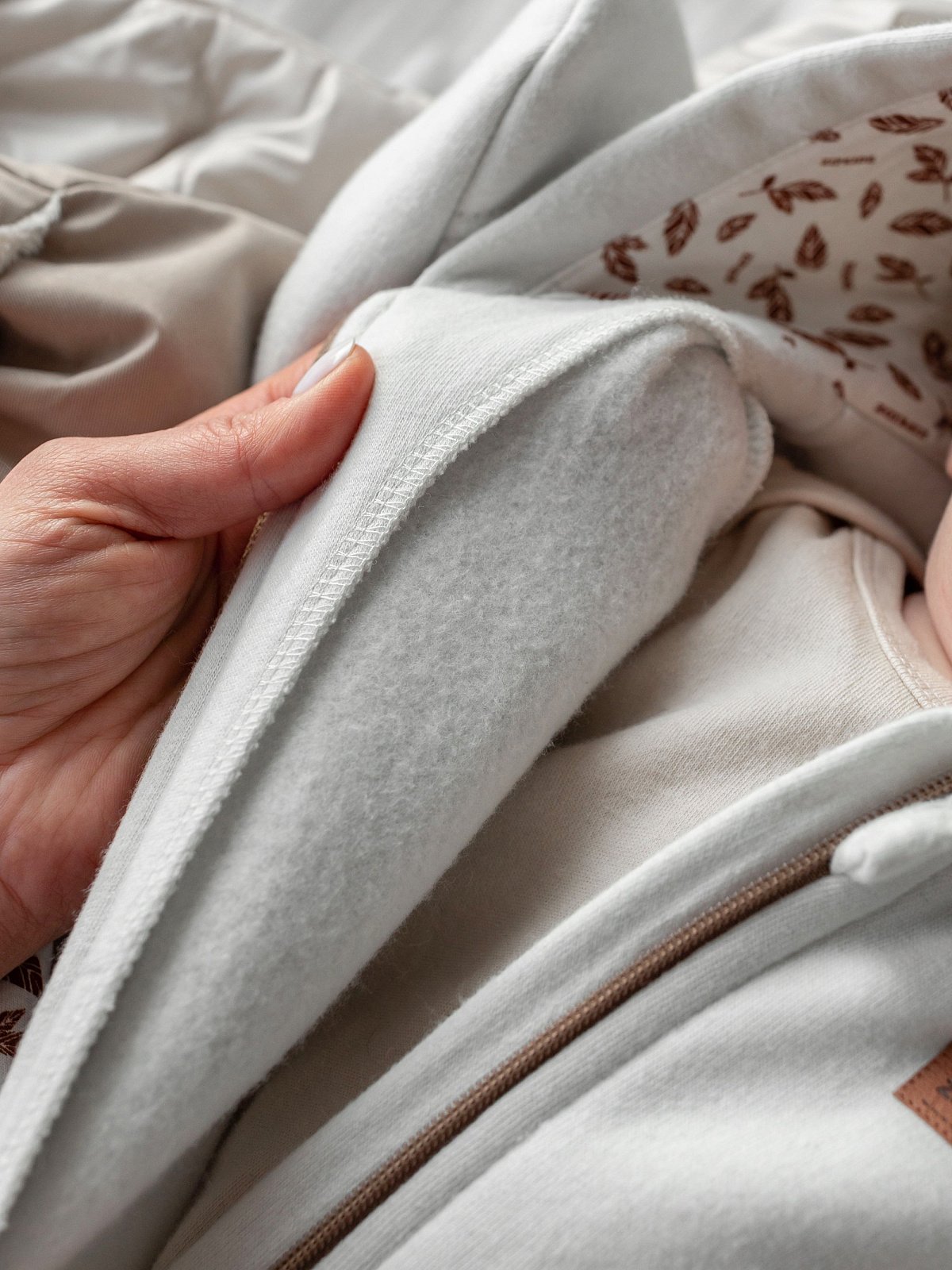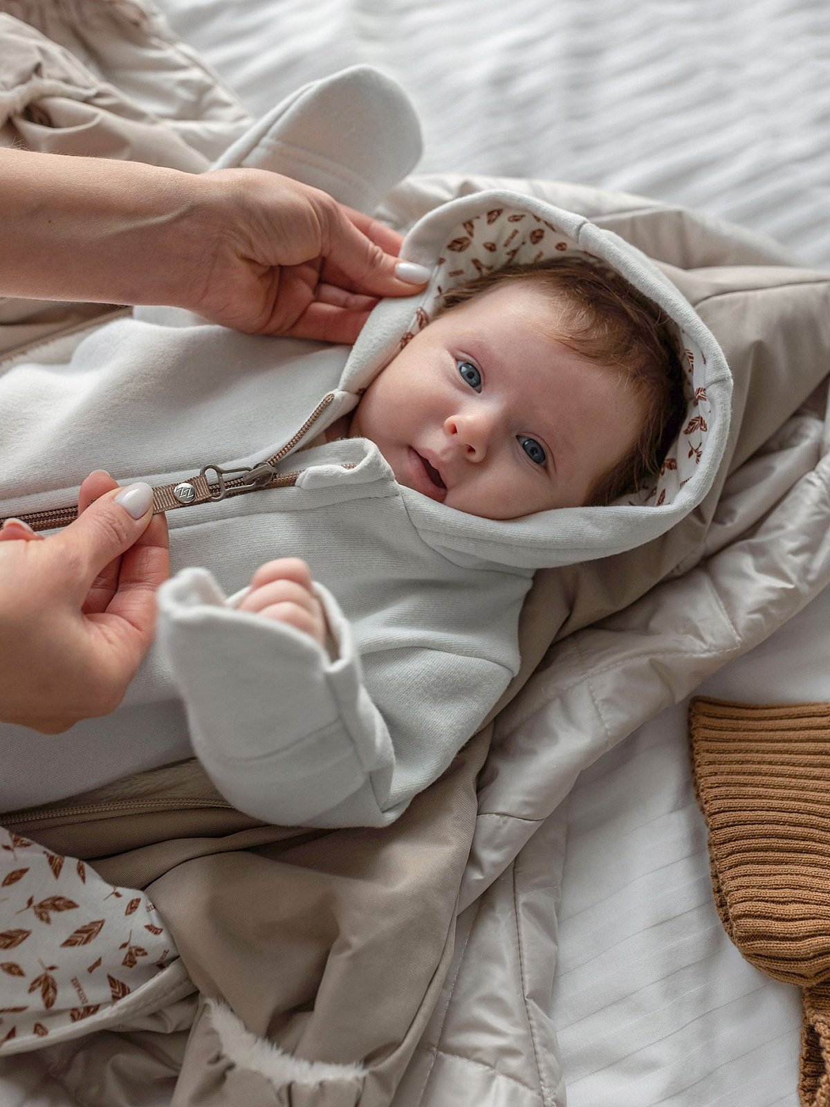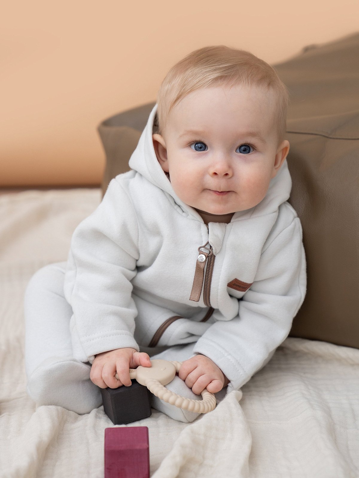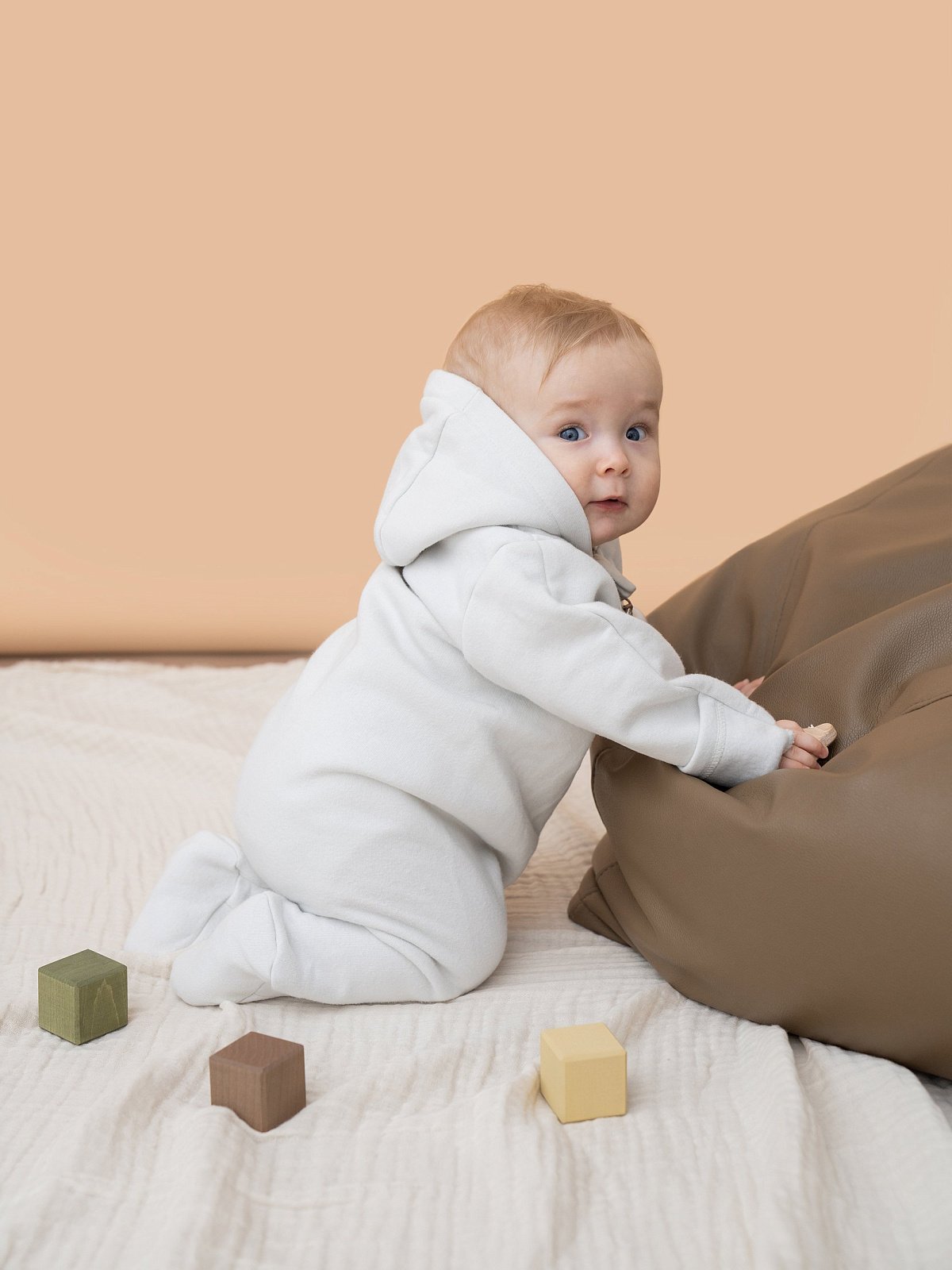 Комбинезон для новорожденных — уютная и практичная одежда для малышей от 1 до 6 месяцев. Изготовлен из мягкого футера с начесом, он сохраняет тепло и обеспечивает комфорт при температуре от +15°C. Закрытые ножки и кармашки-закрывашки на рукавах защищают чувствительную кожу, а капюшон с хлопковой подкладкой защищает голову от ветра.Материал: футер-трикотаж (70% хлопок, 30% эластан), подкладка капюшона — 100% хлопок.