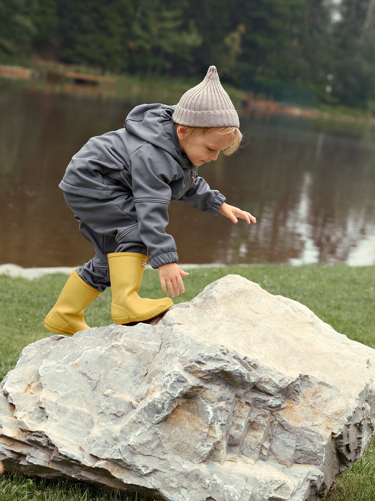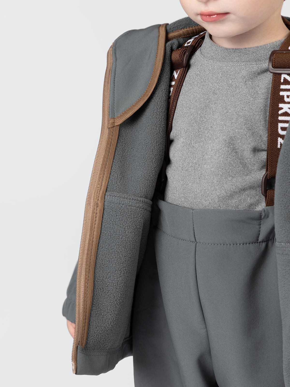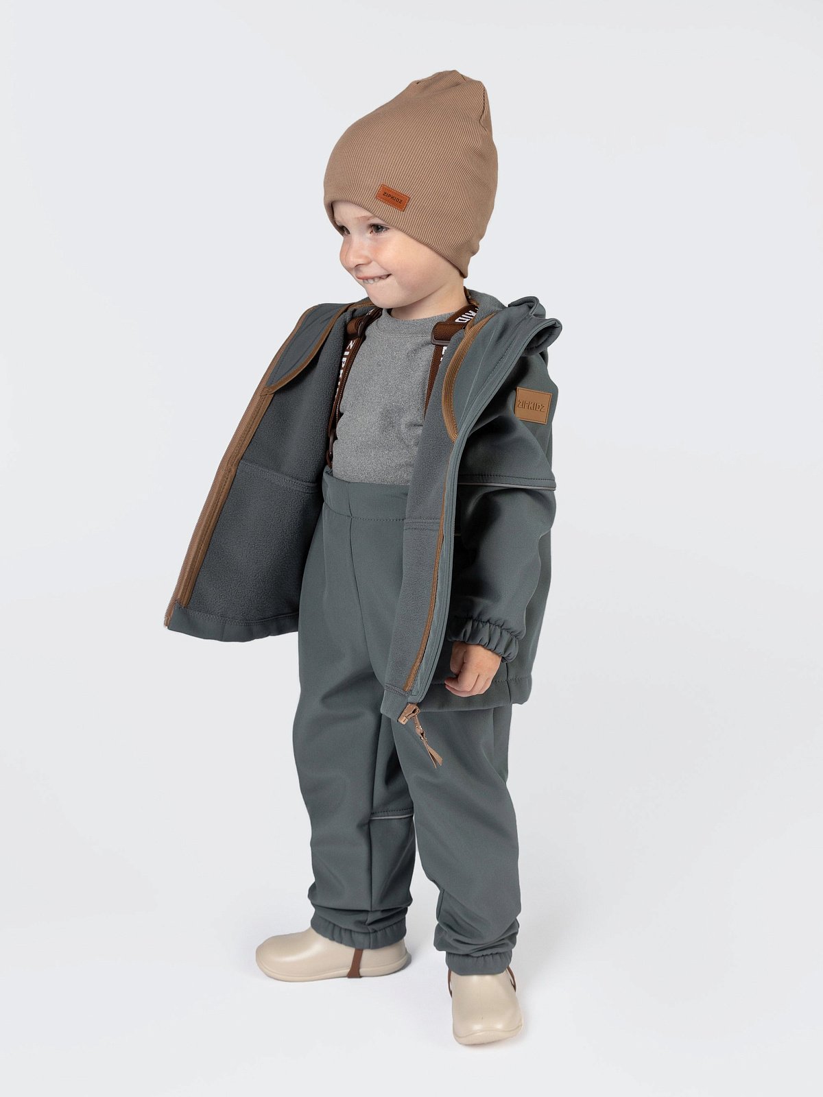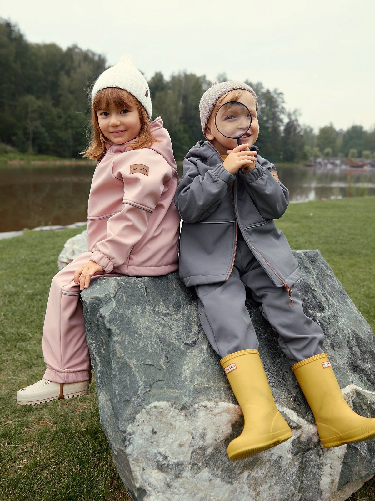 Костюм Даббл Спейс New из софтшелла идеально подходит для детей от 1 до 7 лет. Благодаря высокотехнологичному материалу костюм защищает от ветра и холода, заменяя несколько слоев одежды. Брюки оснащены подтяжками и штрипками, а светоотражающие элементы на проймах и спине обеспечивают безопасность в темное время суток.