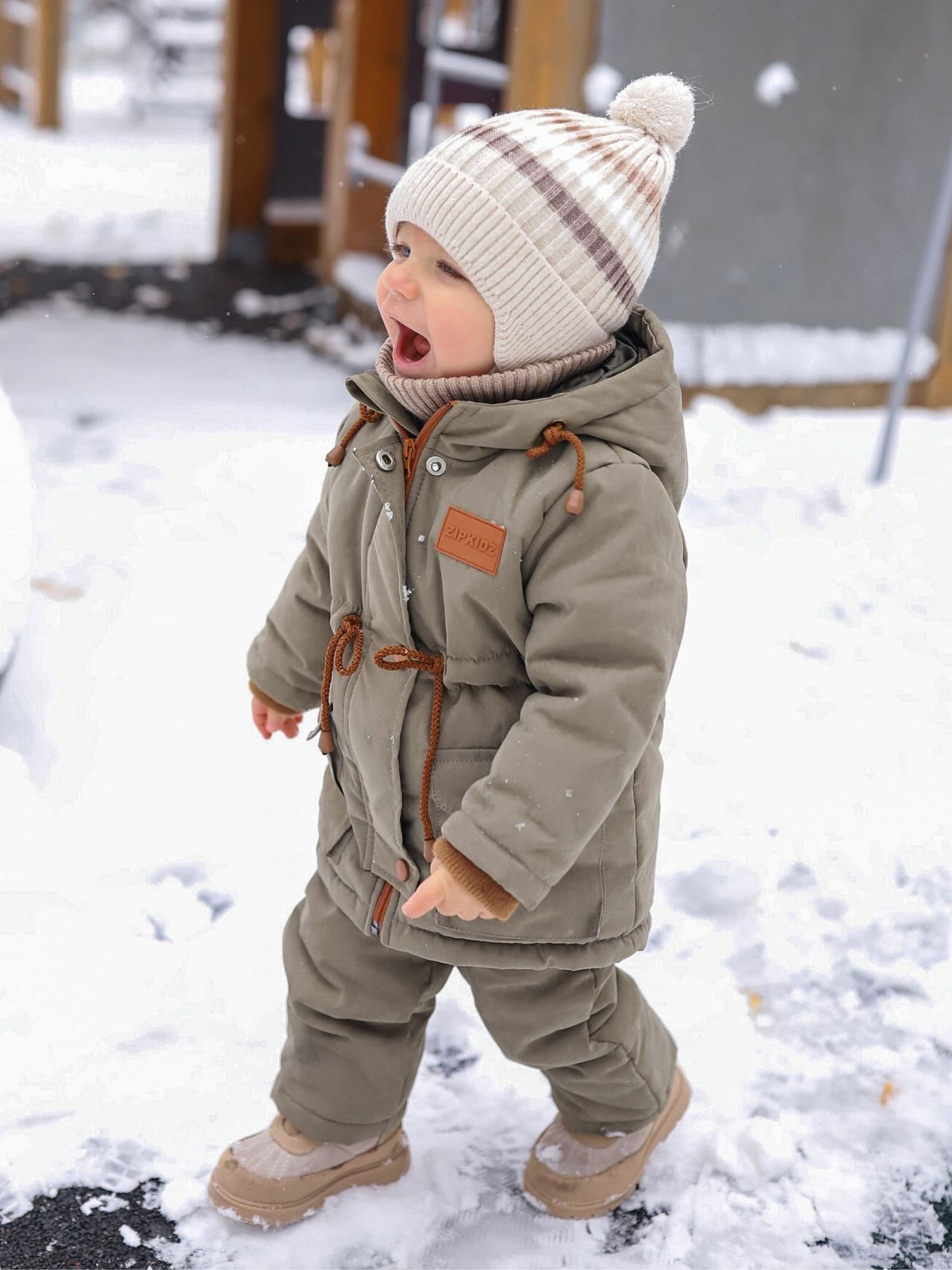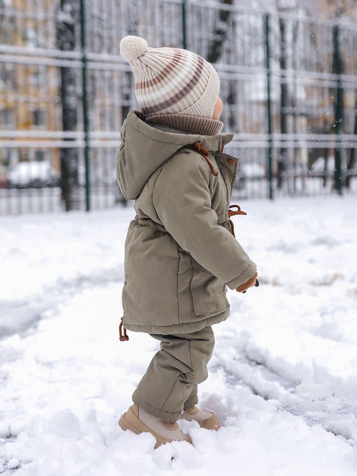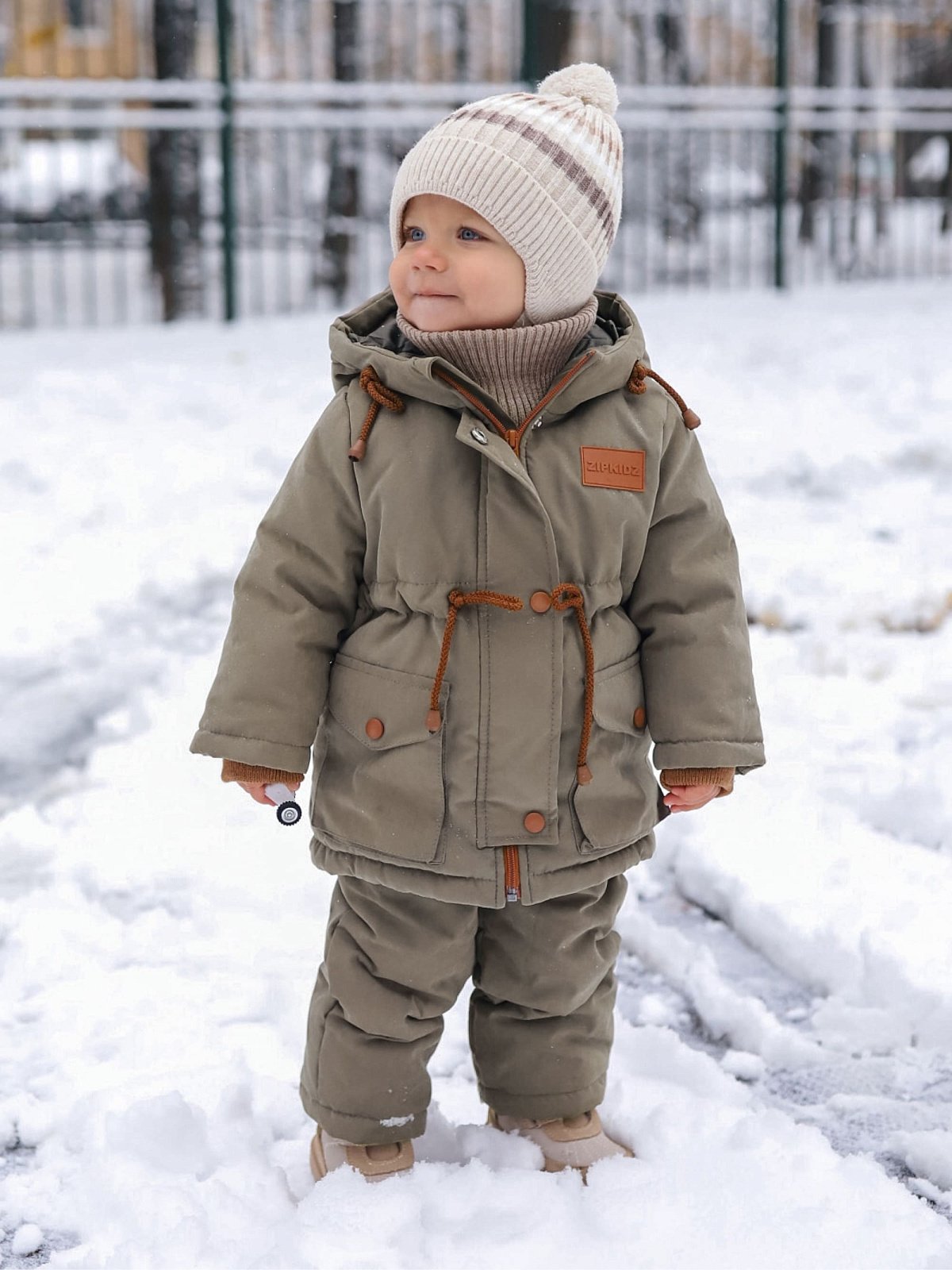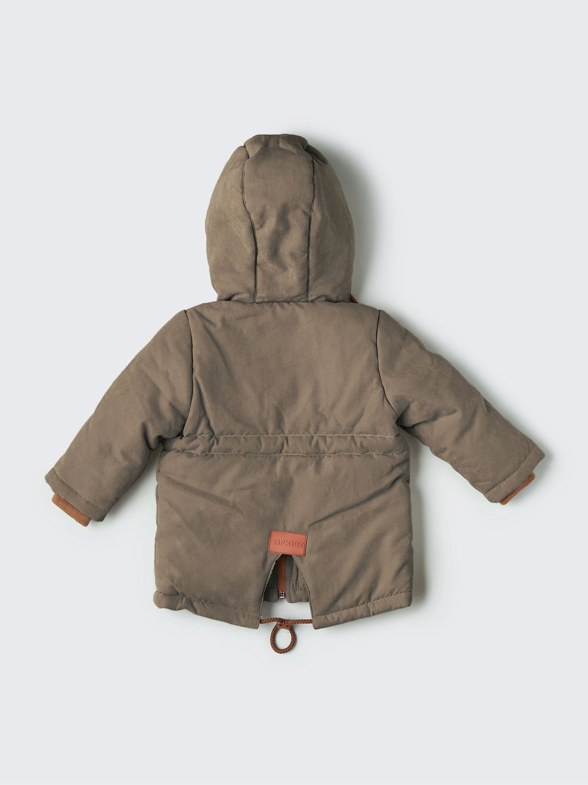 Парка с карманами из мембранны для мальчиков и девочек от 1 года до 4 лет. Капюшон с воротником-стойкой и планка по молнии надежно защищают грудь и шею от ветра.
