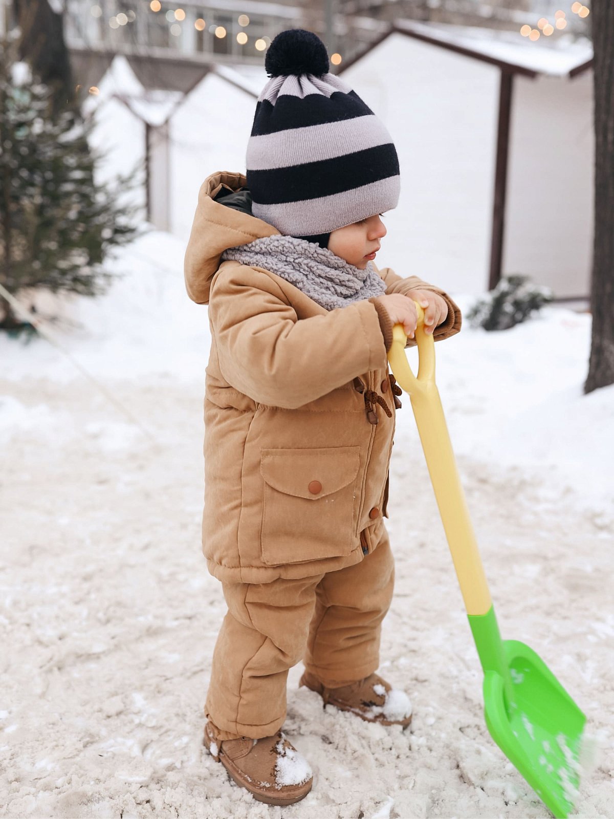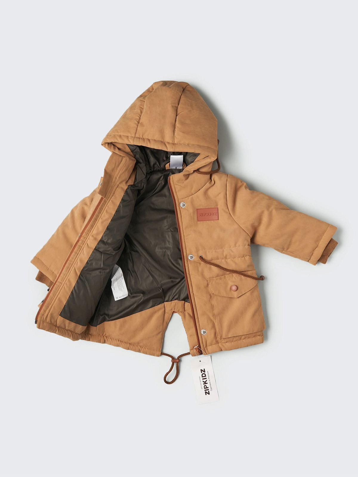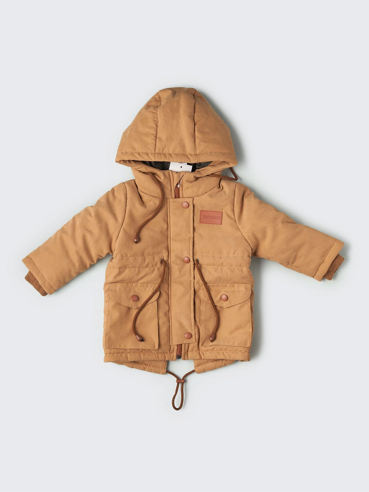 Парка с карманами из мембранны для мальчиков и девочек от 1 года до 4 лет. Капюшон с воротником-стойкой и планка по молнии надежно защищают грудь и шею от ветра.