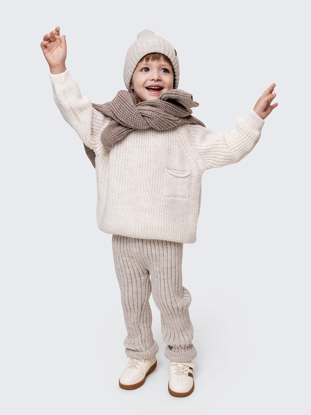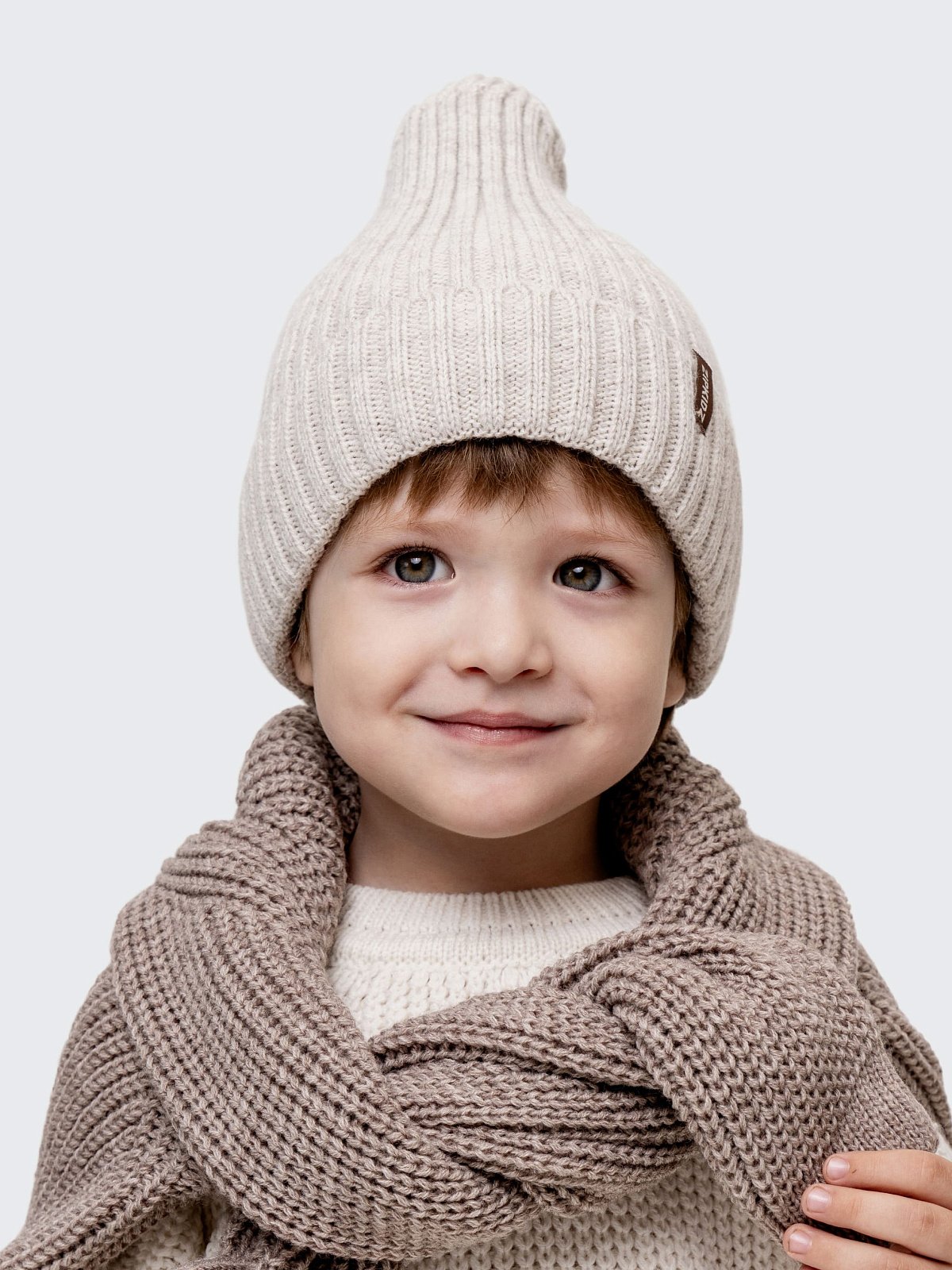 Модель выполнена в спокойных, универсальных оттенках — бежевый, молочный, какао. Такая цветовая палитра подойдёт как девочкам, так и мальчикам, легко сочетается с верхней одеждой и другими элементами гардероба.