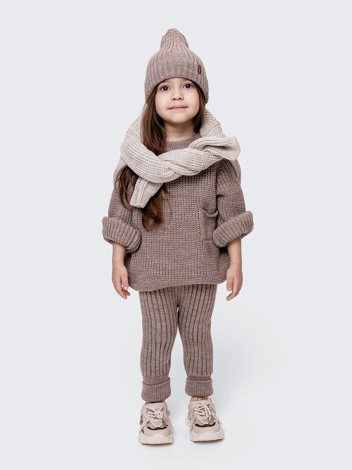 Модель выполнена в спокойных, универсальных оттенках — бежевый, молочный, какао. Такая цветовая палитра подойдёт как девочкам, так и мальчикам, легко сочетается с верхней одеждой и другими элементами гардероба.