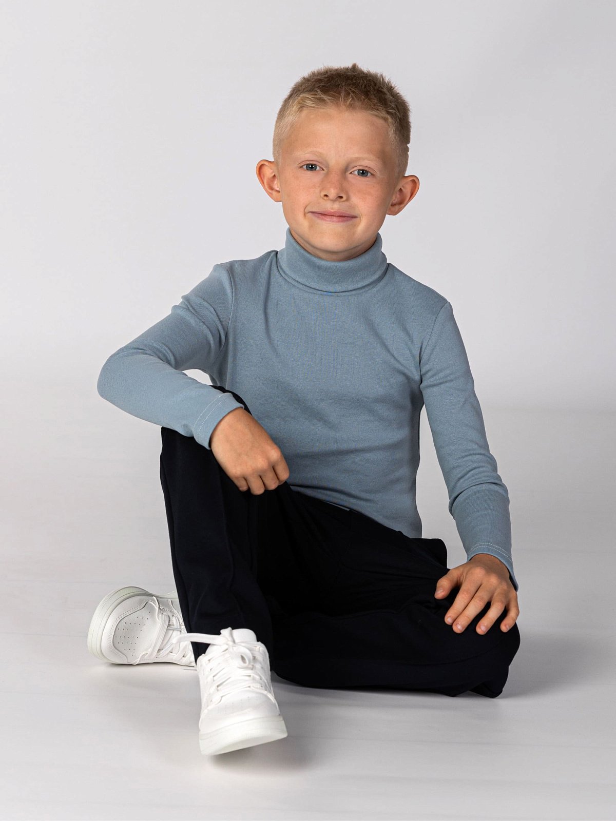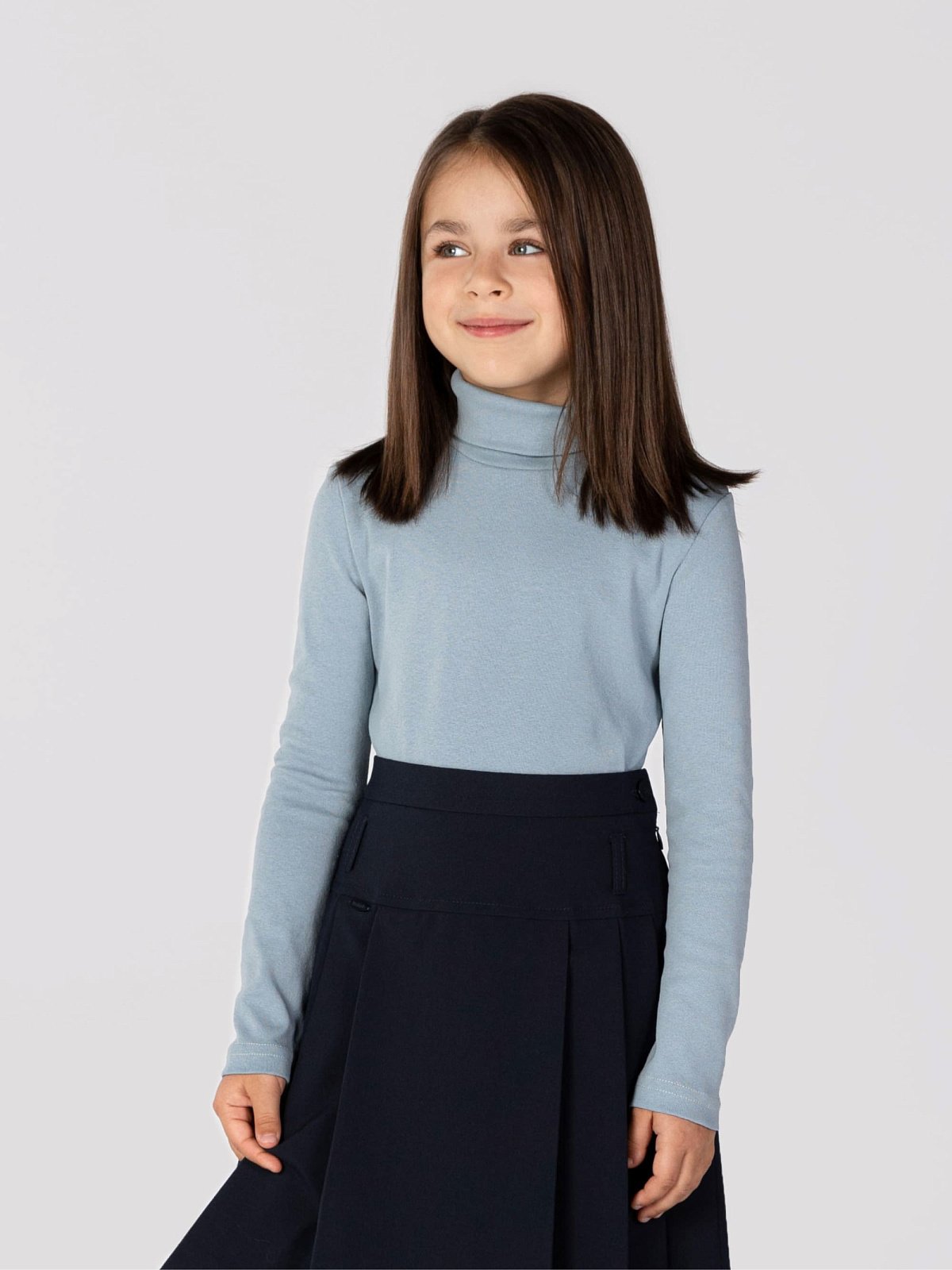 Детская водолазка с высоким воротником из натурального, мягкого и пластичного материала подойдет для мальчиков и для девочек.