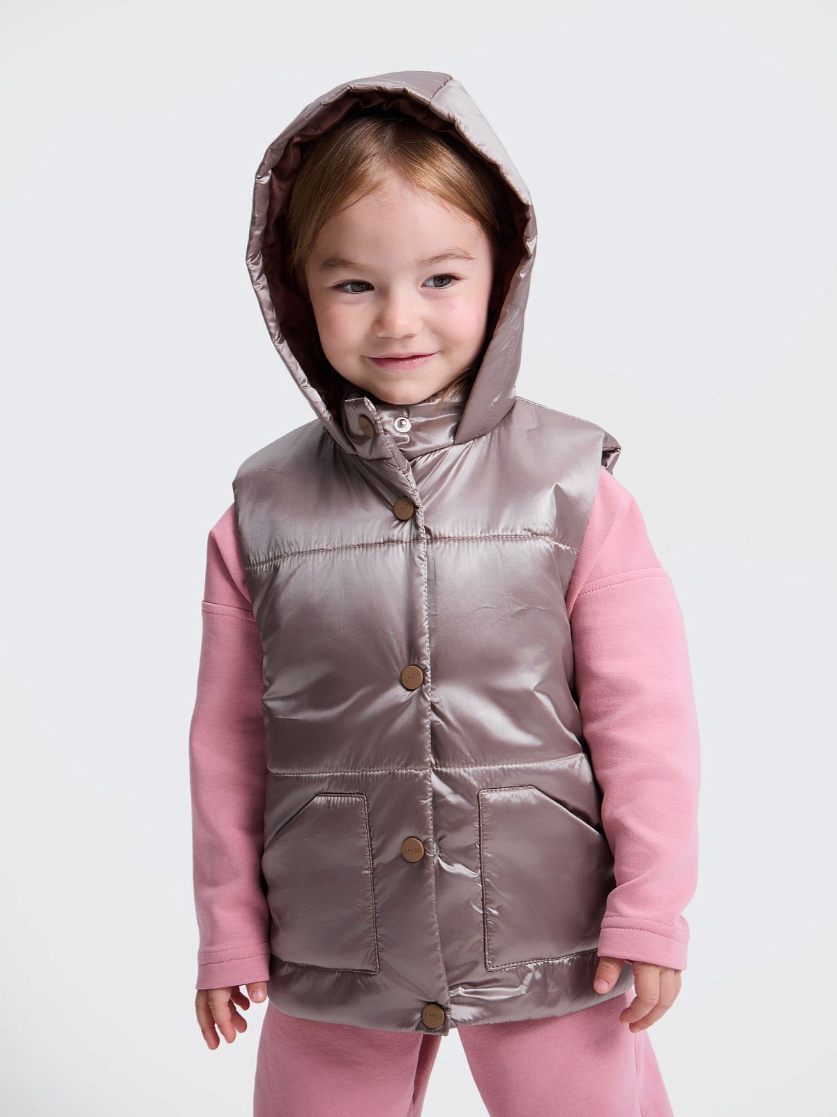 Жилет из плащевой ткани — идеальный выбор для прохладной и ветреной погоды. Он надежно защищает от небольшого дождя и влаги, обеспечивая хорошую воздухопроницаемость. Удлиненная спинка и воротник-стойка обеспечивают дополнительное утепление, а капюшон защищает шею от ветра. Практичная застежка на кнопках делает жилет удобным в повседневном использовании, а прочная ткань легка в уходе.